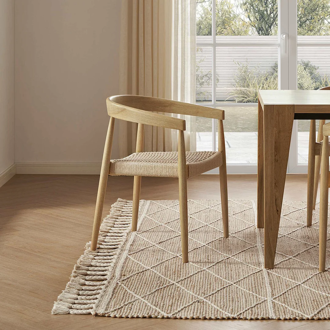 Frame: solid rubber wood; Seat: woven paper cord
