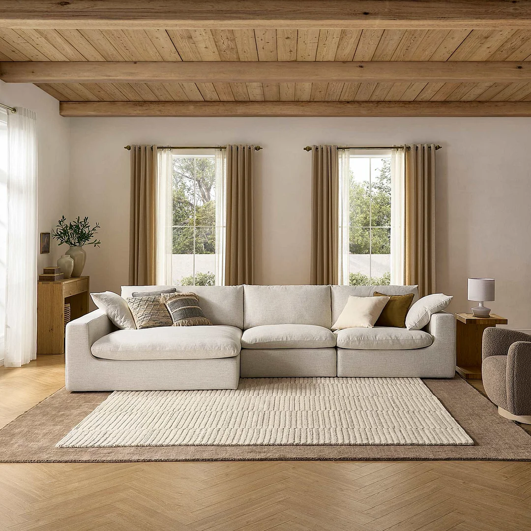 Seat: foam, fiber and feather; Back: fiber and feather