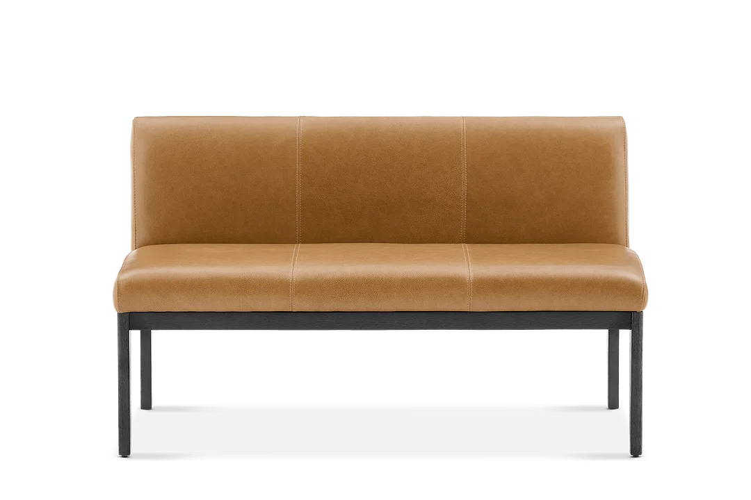 Frame: plywood, PU foam and leather; Legs: solid rubber wood