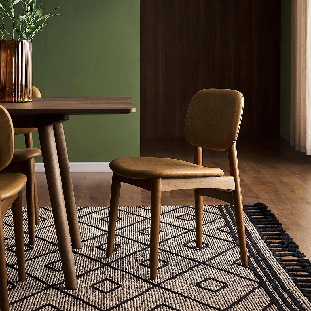 Seat and Back: bent wood with PU foam and top grain leather; Leg: solid rubber wood