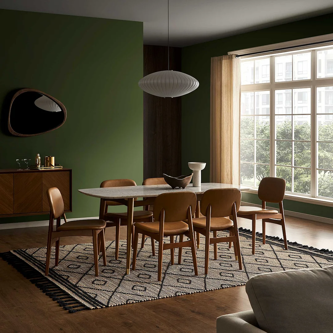 Table: solid rubber wood with copper feet caps; Chair: solid rubber wood
